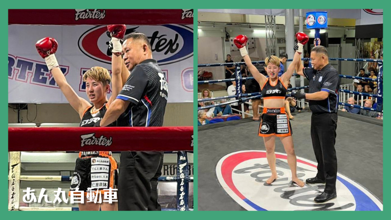 あん丸自動車の代表・光田洋の娘がミツダマンが、早くもプロデビューから2戦目。しかもタイでの海外デビュー戦に臨み勝利を飾りました。これで2戦2勝という戦績、初めての海外でも臆することなく、前に出る戦いだったようです。